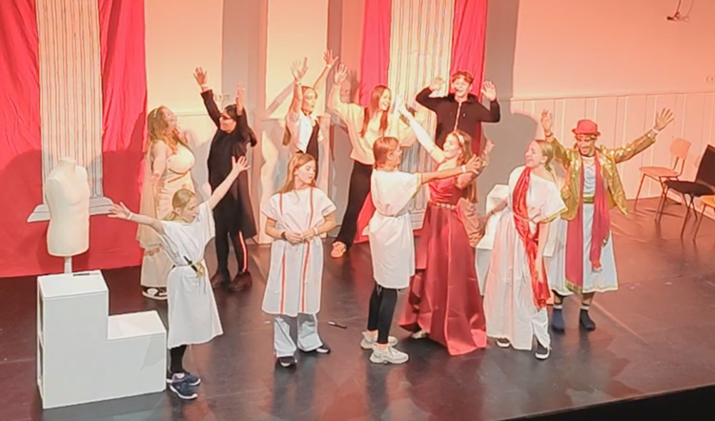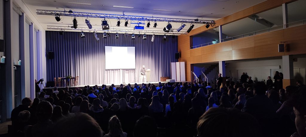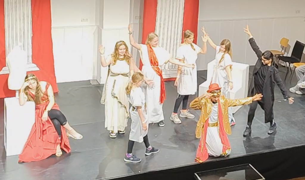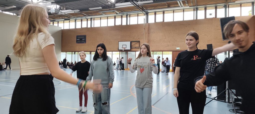 Mitten in den Herbstferien machte sich eine kleine Gruppe unerschrockener Schüler:innen mit zwei Lehrern auf dem Weg zum Europäischen Jugendmusical Festival nach Herxheim. 5 Tage lang dürfen wir dort an Top-Workshops teilnehmen, die Produktionen der vier anderen Gruppen anschauen und selber eine Kurzversion unseres Musicals Julius aufführen.